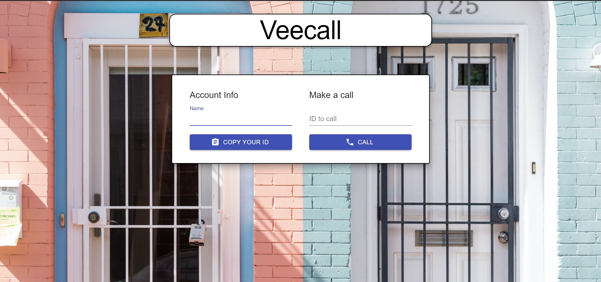Vee-Call is a real time video calling application developed by Javascript library PeerJS & Socket.IO. It uses webRTC API to capture audio & video media of user by allowing direct P2P communication.